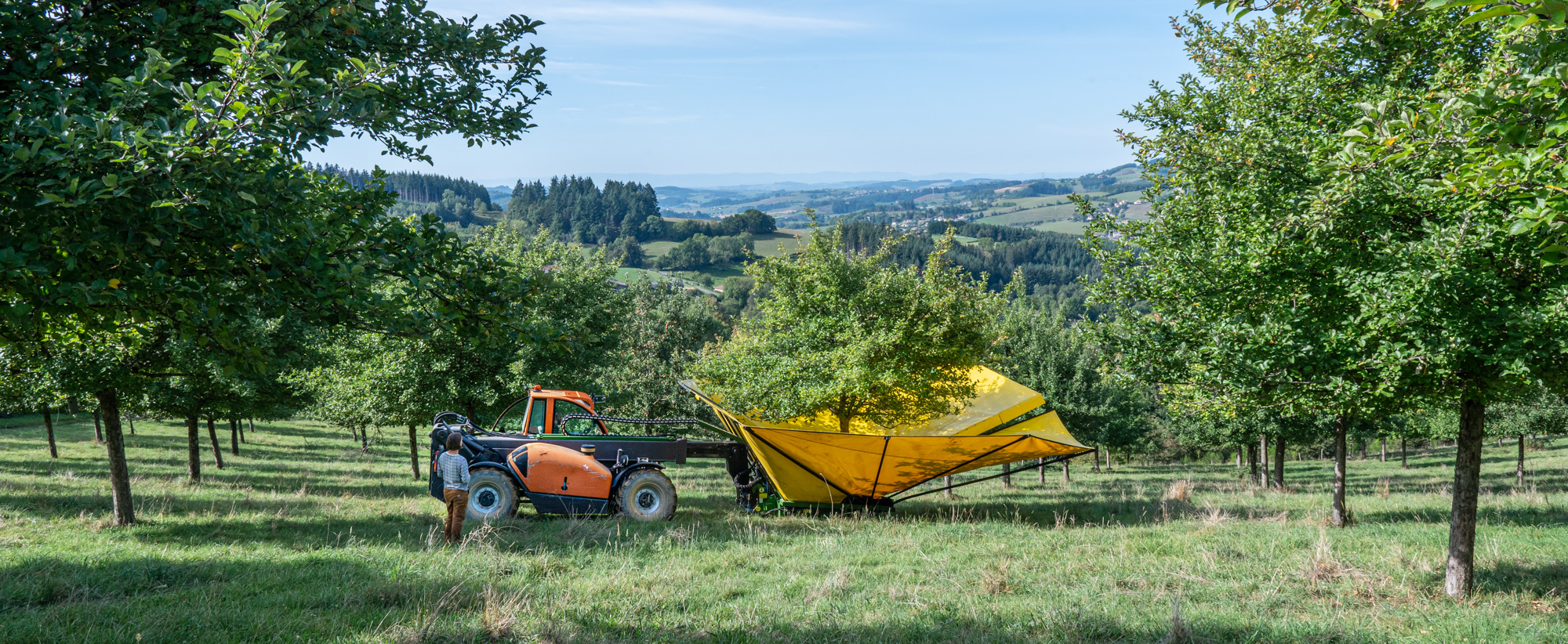 Nous disposons de plus de 30 variétés anciennes de pommes à cidre françaises réputées pour leur qualité gustative mais aussi pour leur rusticité, l’échelonnement de leur floraison et leur adaptabilité au terroir. Ce terroir de moyenne montagne permet l’expression d’une très forte typicité que l’on retrouve dans les fruits. Celle-ci est renforcée par l’agriculture biologique.