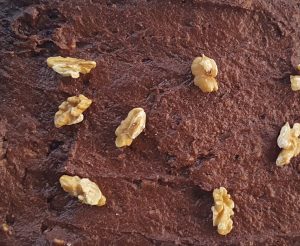 ETAPE 5 : Placez dans un moule à gâteau ou dans un moule à cake préalablement graissé et fariné. Ajoutez quelques noix pour la déco !